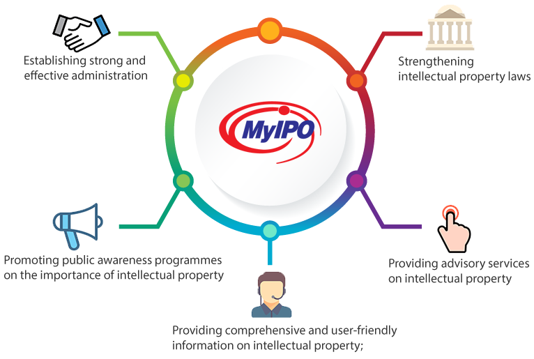 MyIPO is responsible for the development and management of intellectual property system in Malaysia. MyIPO administers and enforces Intellectual Property Legislation namely the Trademarks Act 2019, the Patents Act 1983, the Copyright Act 1987, the Industrial Designs Act 1996, the Layout Designs of Integrated Circuits Act 2000, Geographical Indications Act 2000 and subsidiary regulations.